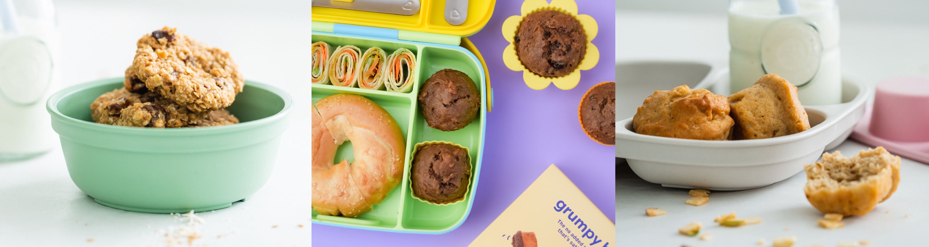 Grumpy Bums has you covered with a range of kids' snacks and cereals that contain no added sugar. Yep, a big fat nada. No refined sugars either. In fact no nasties at all. Just real ingredients, like wholegrains and freeze-dried fruits, put together in an easy peasy, foolproof mix that takes less than 20 minutes to make.